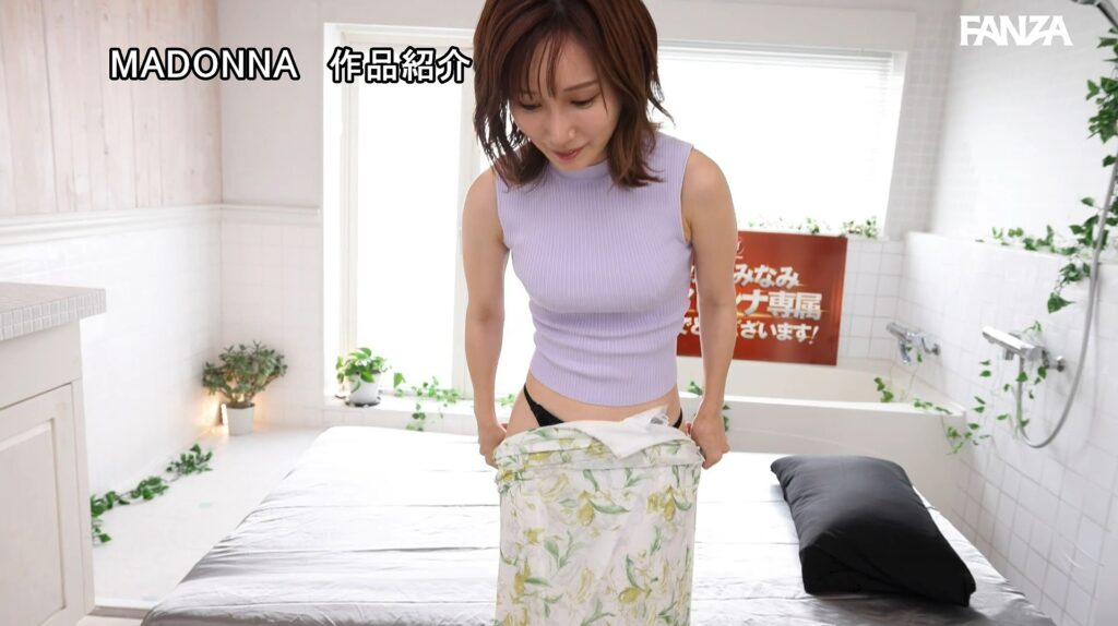 移籍デビュー作では、まるでデビュー作品のような形式での撮影が行われました。少し照れながらも、大人の魅力をより漂わせて一心不乱にマドンナAVでのセックスで乱れます。