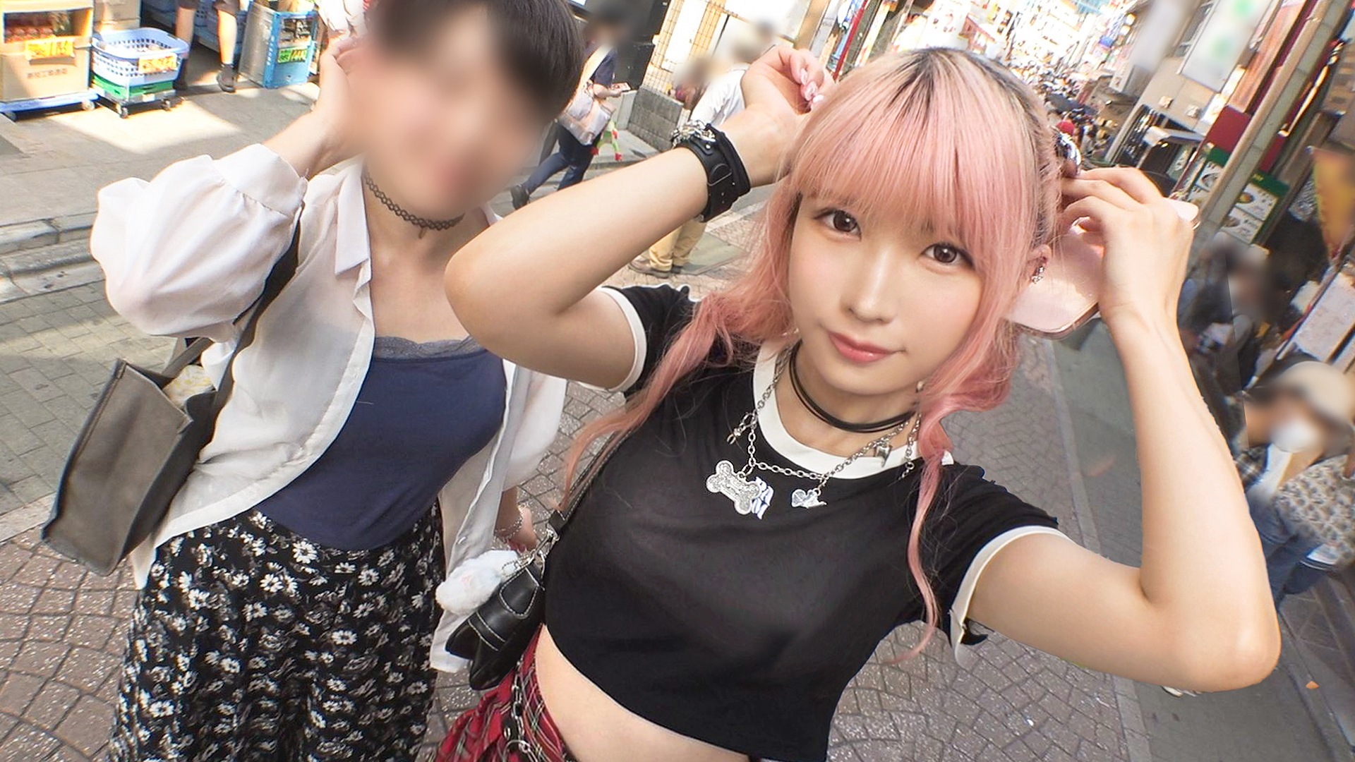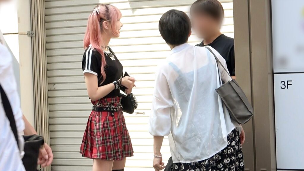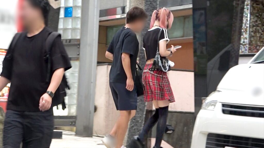 原宿駅付近でマルチの女が現れるのを待つと、数十分程度で細いピンクの髪の女の子が声を掛けてきました。ツインテールの髪型に、チェックのスカートにニーハイ姿。