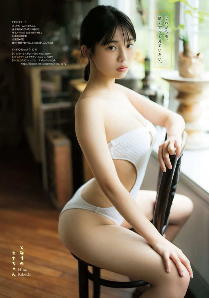 今回ご紹介をする菊地姫奈さんの事を少し書きたいと思います。もうトップグラビアアイドルさんなので彼女の経歴諸々チェック済みの方も多いと思いますが、この記事にもお付き合い頂けましたら幸いです。では参ります。菊地姫奈さん、2004年10月19日生まれで茨城県の出身。スリーサイズはB85-W57-H83cm、カップサイズはFカップもあるそうです^^